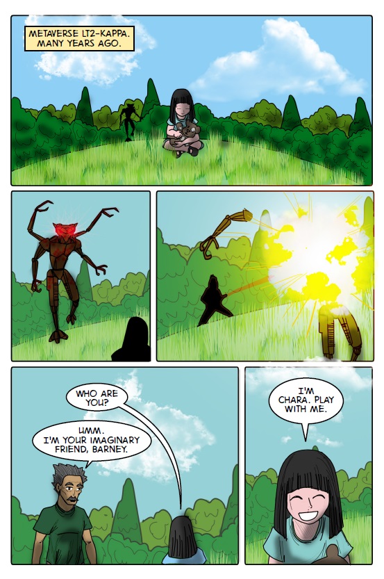 Passageways through the Metaverse is a comic about Aliza and her father’s crazy, cynical friend, Barney, and their adventures in different metaverses using a golden book that has a troublesome sense of humor. Sometimes the metaverse they visit is an alternate universe, and sometimes it’s just a strange place in the universe altogether.